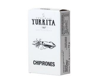 Små bläckfiskar inlagda i olivolja. På spanska kallas de för Chipirones vilket betyder babybläckfisk. En klassisk tapasrätt från Baskien. Produceras av Yurrita Gastronomica som har en gedigen hantverkshistora som sträcker sig ända tillbaka till starten 1867.